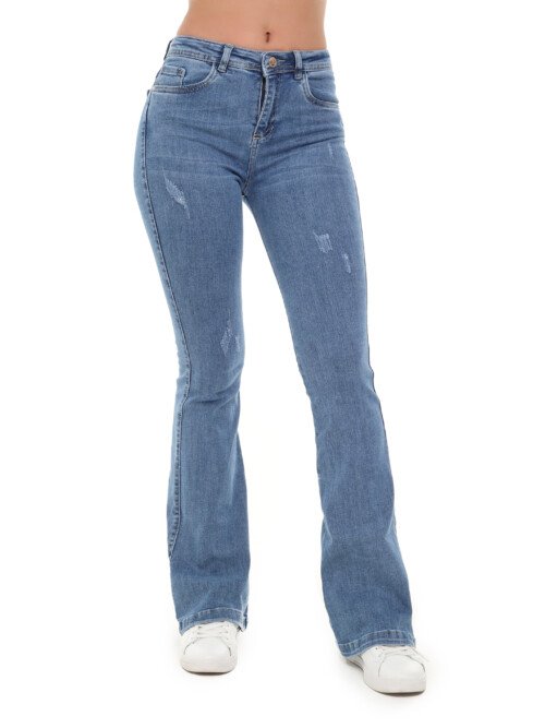 Jean Recto Dama Azul Medio – Con Rayitas