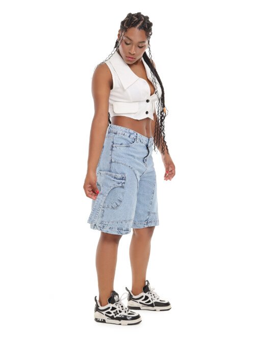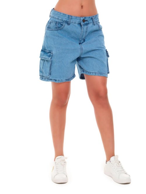 Bermuda Jean Cargo_Azul claro Rígido