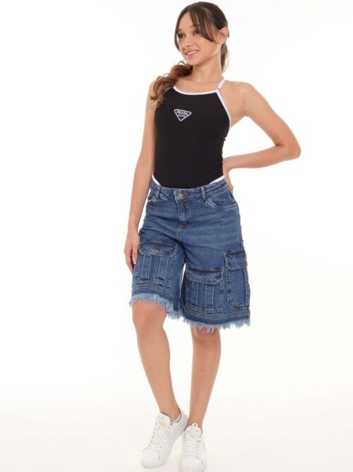 Bermuda Jean Cargo_Azul Oscuro_Rígido_Flecos
